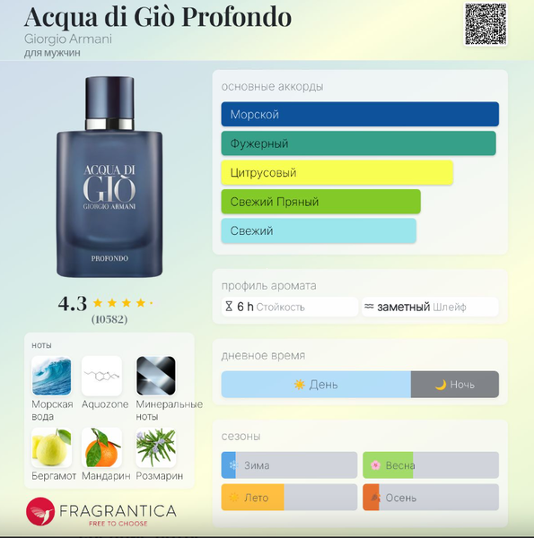 | Верхние ноты | Морские ноты, Аквозон, Бергамот, Зеленый мандарин |