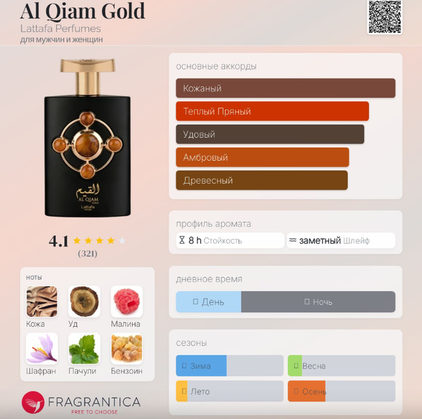 | Базовые ноты | Уд, Бензоин, Гваяк, Амбра, Ветивер |