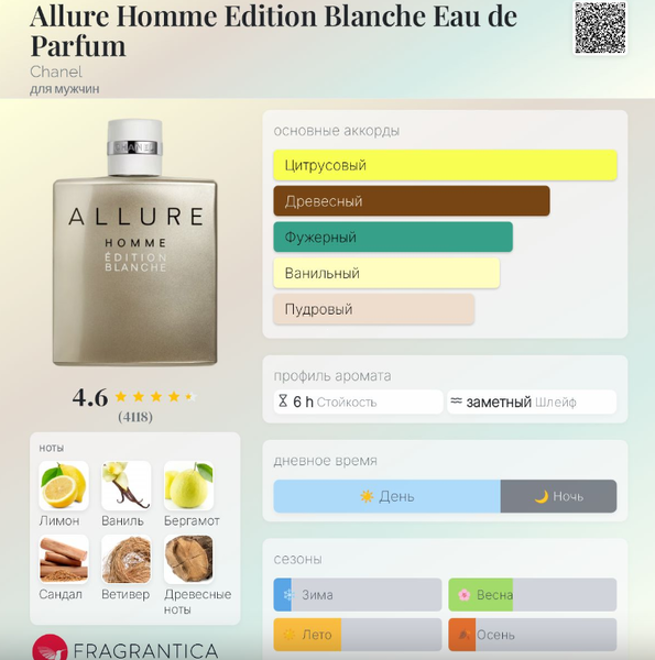 | Базовые ноты | Мадагаскарская ваниль, Ветивер |