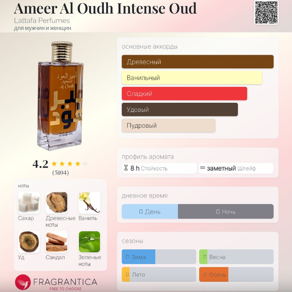 | Базовые ноты | Уд, Сандал, Травы |