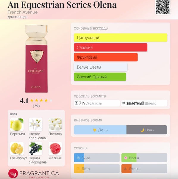 | Верхние ноты | Бергамот, Грейпфрут, Мандарин, Апельсин |