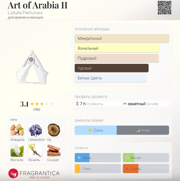 | Базовые ноты | Уд, Ваниль, Сандал, Гваяк |