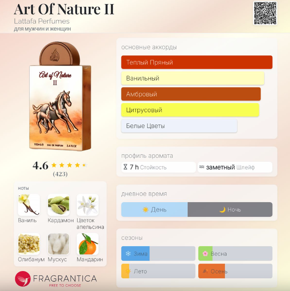 | Верхние ноты | Олибанум, Мандарин, Бергамот, Яблоко |
