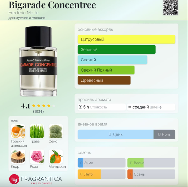 | Верхние ноты | Горький апельсин, Мандарин, Грейпфрут, Чай, Кардамон, Розовый перец, Черная смородина |