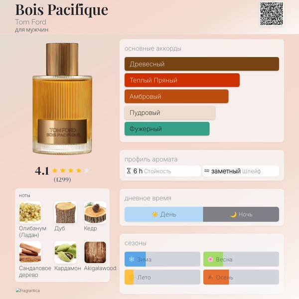 | Средние ноты | Олибанум, Дуб, Кедр, Белый сандал, Ирис |