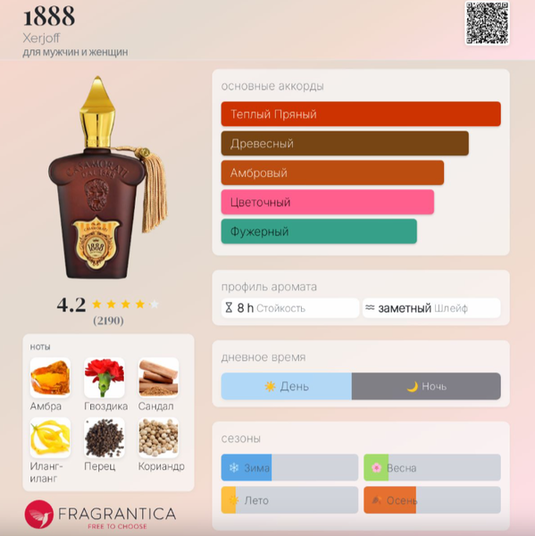 | Верхние ноты | Гвоздика, Перец, Кориандр, Шафран |