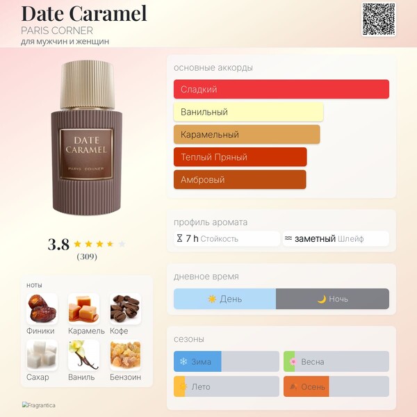 | Верхние ноты | Финики, Кофе, Апельсин |