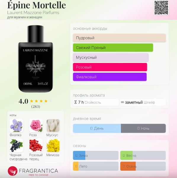 | Средние ноты | Филака, Дамасская роза, Роза, Черная смородина, Мимоза |