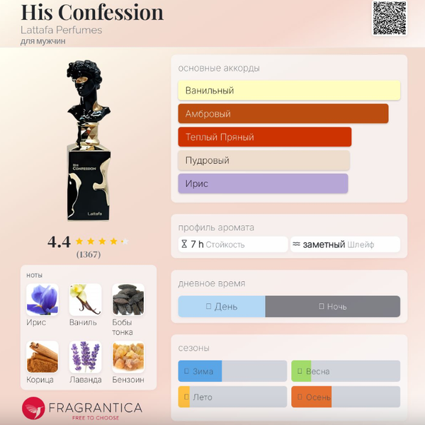 | Базовые ноты | Ваниль, Бобы тонка, Амбра, Ладан, Кедр, Пачули |