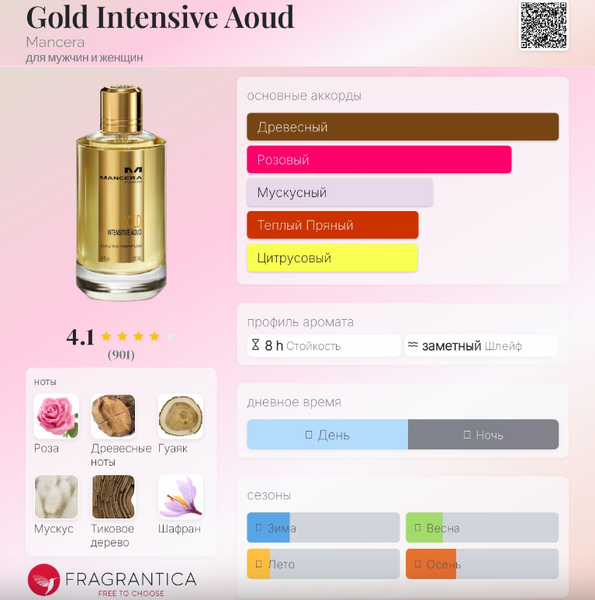 | Средние ноты | Роза, Гваяк, Тиковое дерево, Шафран, Герань |