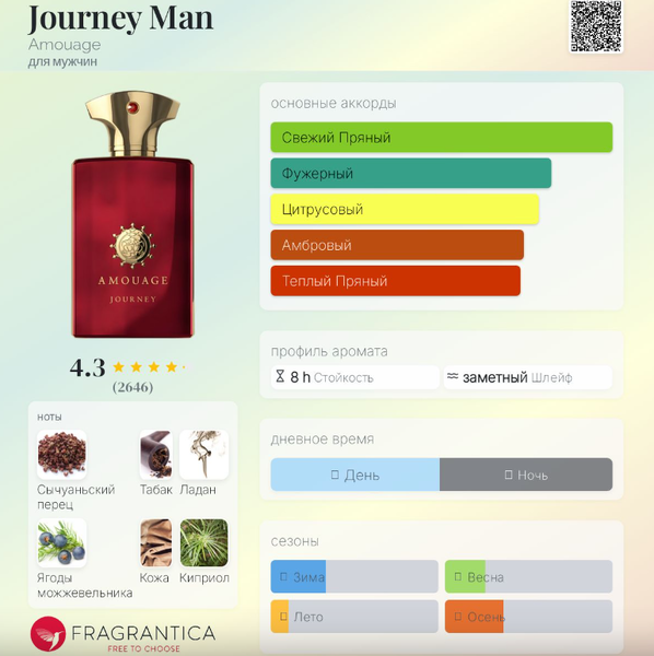 | Верхние ноты | Нероли, Бергамот, Кардамон, Сычуаньский перец |