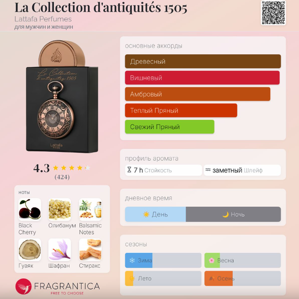 | Верхние ноты | Черная вишня, Шафран |