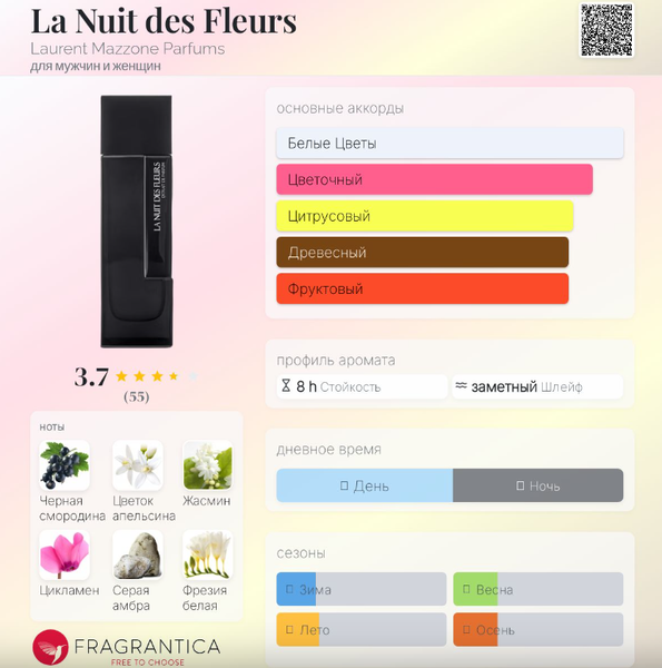 | Верхние ноты | Черная смородина, Фрезия, Розовый перец, Лимон, Бергамот, Грейпфрут |