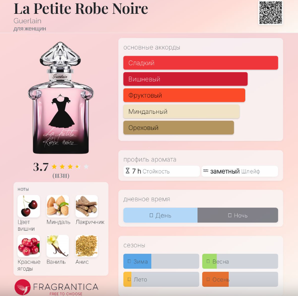 | Верхние ноты | Вишня, Миндаль, Красные ягоды, Бергамот |