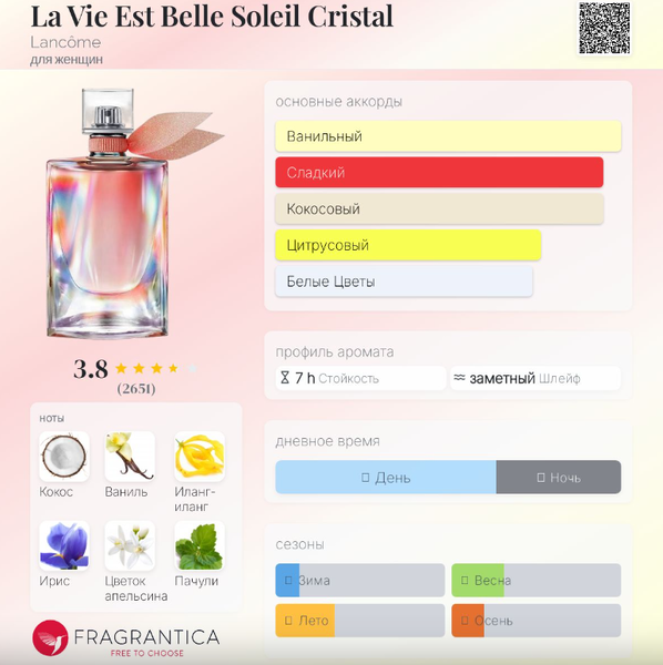 | Базовые ноты | Кокос, Ваниль, Пачули |