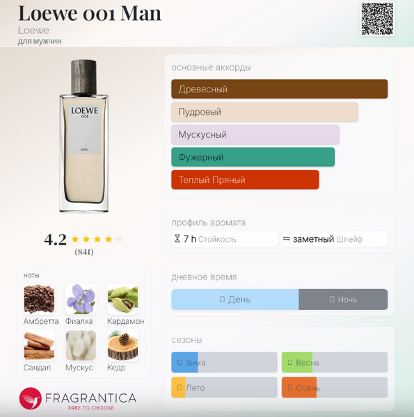 | Средние ноты | Амбретта, Сандал, Кедр, Семена моркови, Кипарис, Ветивер |