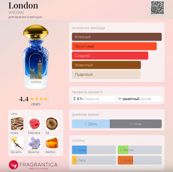 | Базовые ноты | Кожа, Ваниль, Амбра, Мускус |