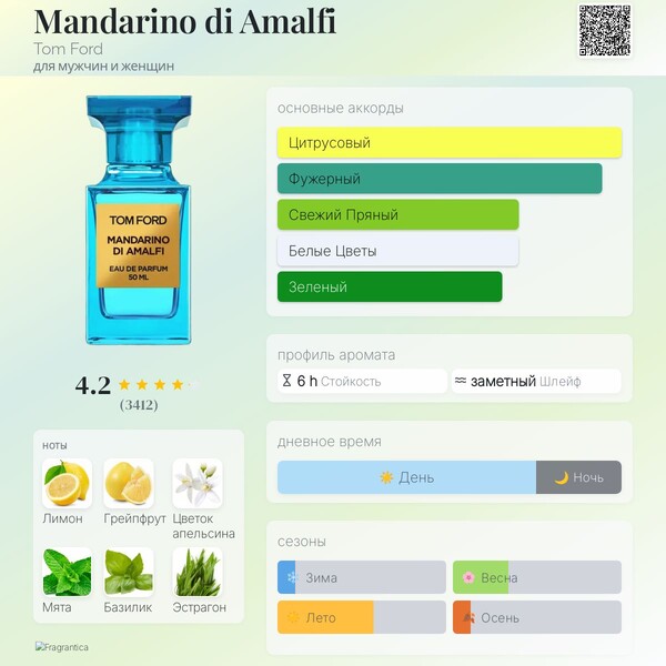 | Верхние ноты | Лимон, Грейпфрут, Мята, Базилик, Тархун, Черная смородина |