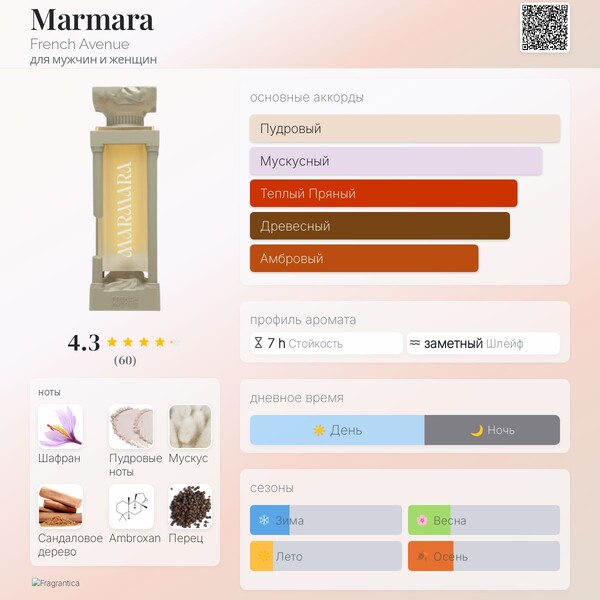 | Верхние ноты | Шафран, Черный перец, Бергамот |