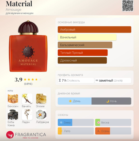 | Базовые ноты | Гваяковое дерево, Уд, Ладан, Османтус, Смола, Бобы тонка |