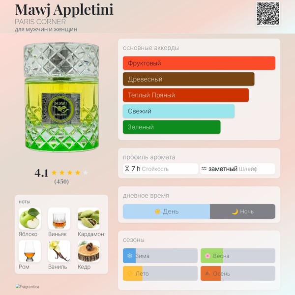 | Средние ноты | Яблоко, Бренди, Ром, Ваниль, Ананас, Мох |