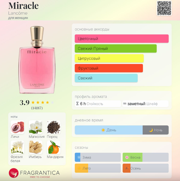| Базовые ноты | Жасмин, Мускус, Амбра |