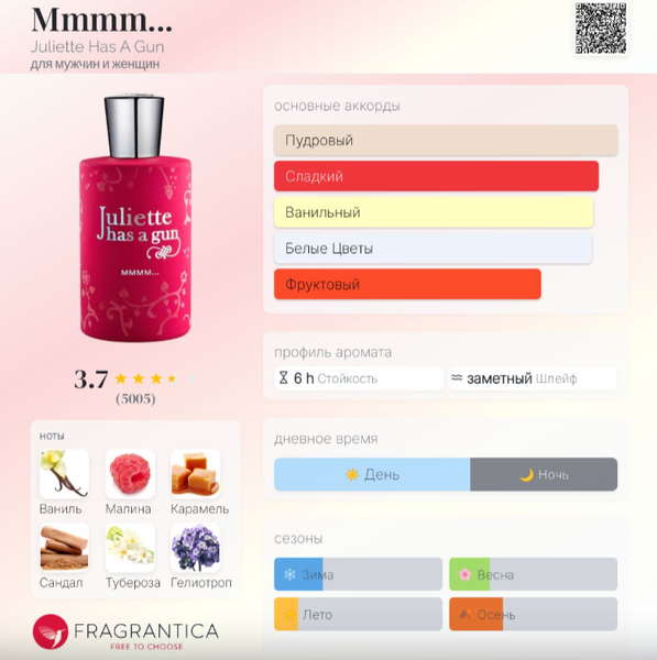 | Верхние ноты | Малина, Герань, Нероли |