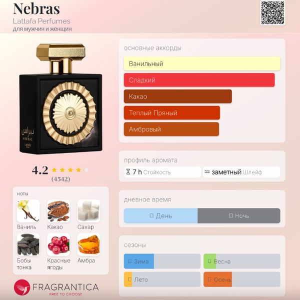 | Базовые ноты | Сахар, Бобы тонка, Амбра, Мускус |