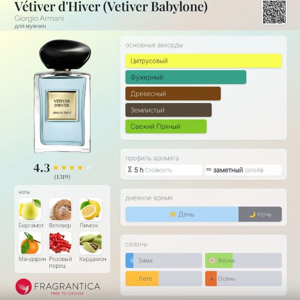 | Базовые ноты | Ветивер, Пачули |