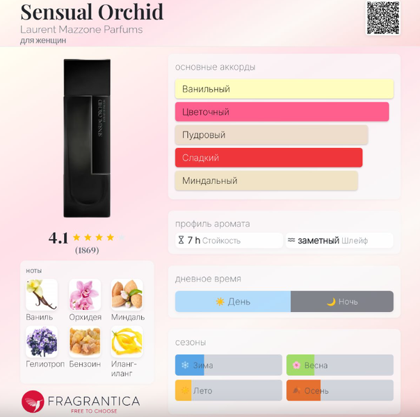 | Базовые ноты | Ваниль, Бензоин, Мускус, Древесные ноты, Лабданум, Кедр |
