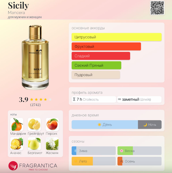 | Верхние ноты | Мандарин, Грейпфрут, Персик, Ананас, Бергамот, Яблоко |