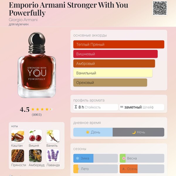 | Базовые ноты | Каштан, Ваниль, Амбервуд |