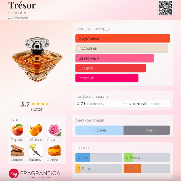 | Верхние ноты | Персик, Роза, Цветок абрикоса, Сирень, Ананас, Ландыш, Бергамот |
