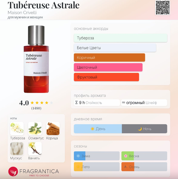 Мерцающая в ночном небе фруктовая звезда. Взгляд через телескоп: созвездие корицы, пудровая комета. Млечный путь из цветов туберозы. Ванильный силуэт, нежная персиковая кожа, вспышка метеора, кожаная туманность. Мускусная галактика.