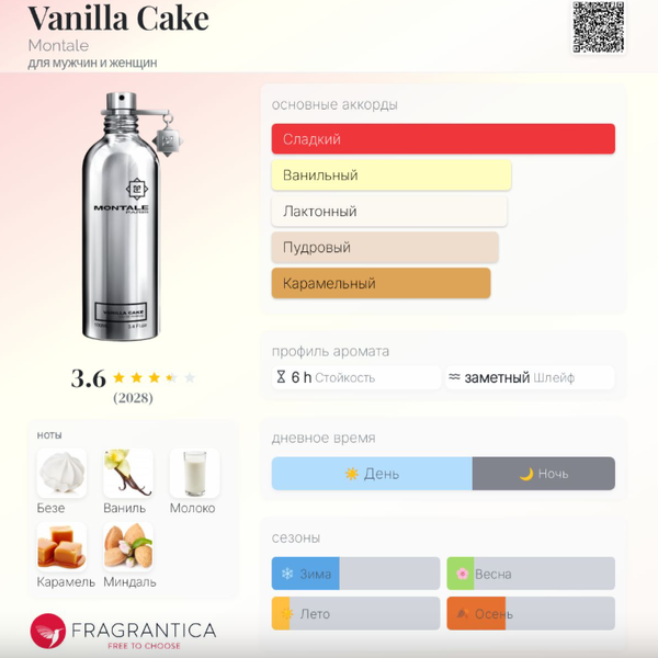 | Верхние ноты | Безе, Мадагаскарская ваниль |