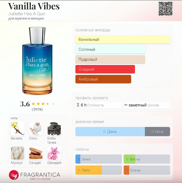 | Базовые ноты | Бобы тонка, Мускус, Сандал, Бензоин |